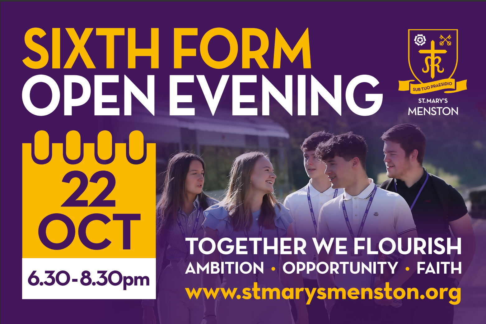 Our Sixth Form Open Evening takes place on 22nd October 2025 when we will be opening our doors to all students interested in finding out what makes St Mary's so successful.
